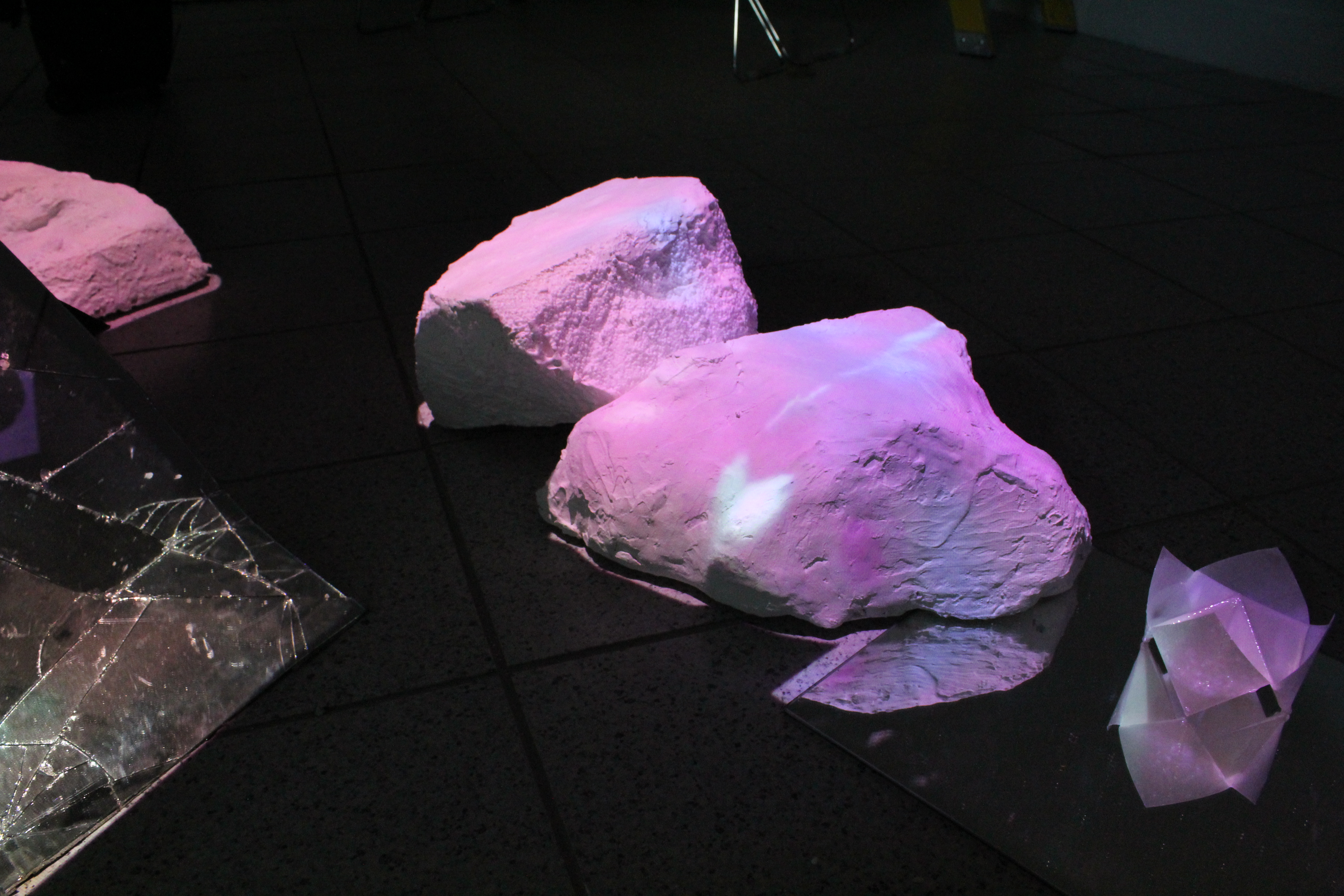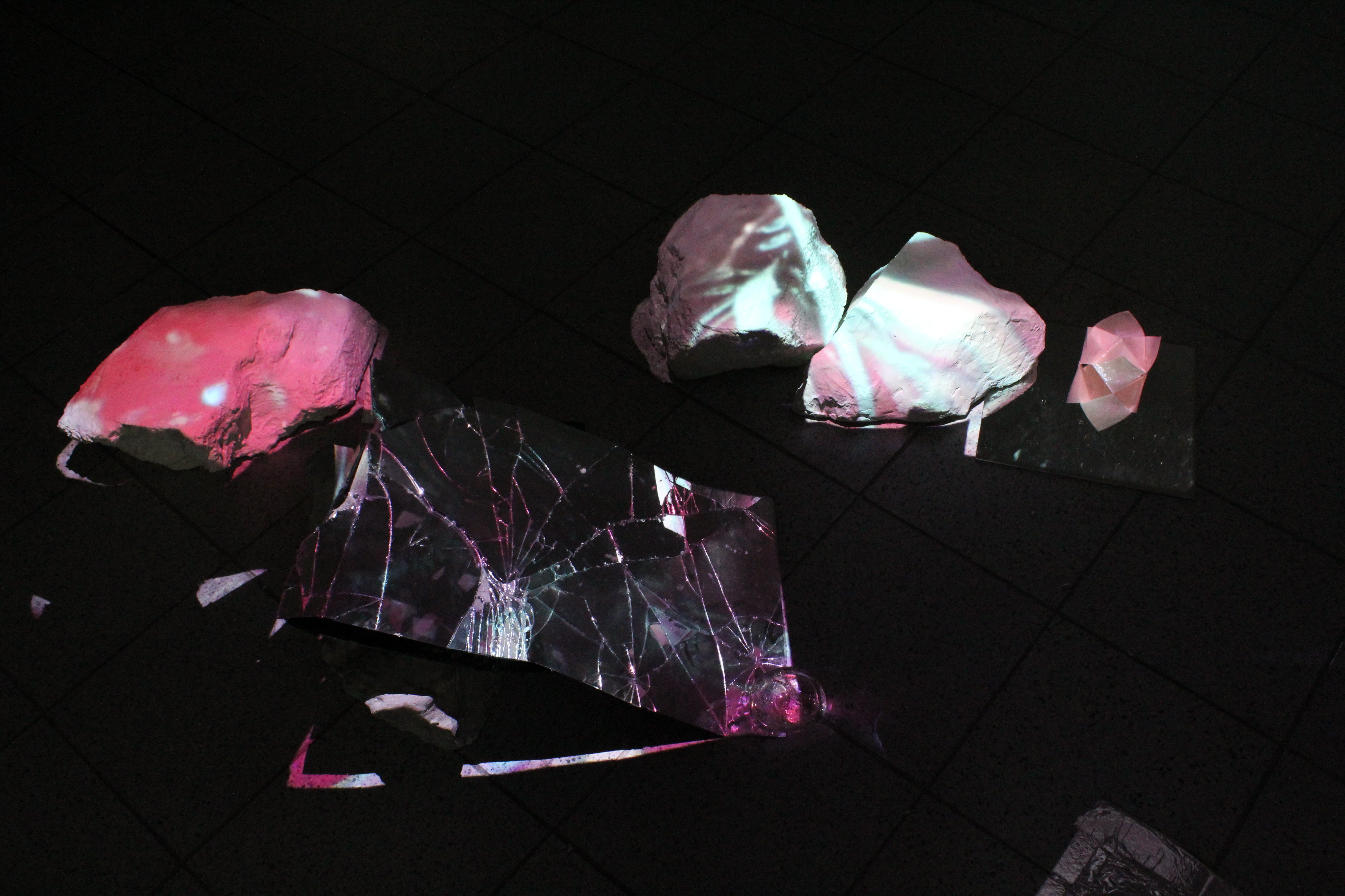 Projection, Polystyrene, Plaster, Broken Mirror, Mirror Squares, Resin, Paper