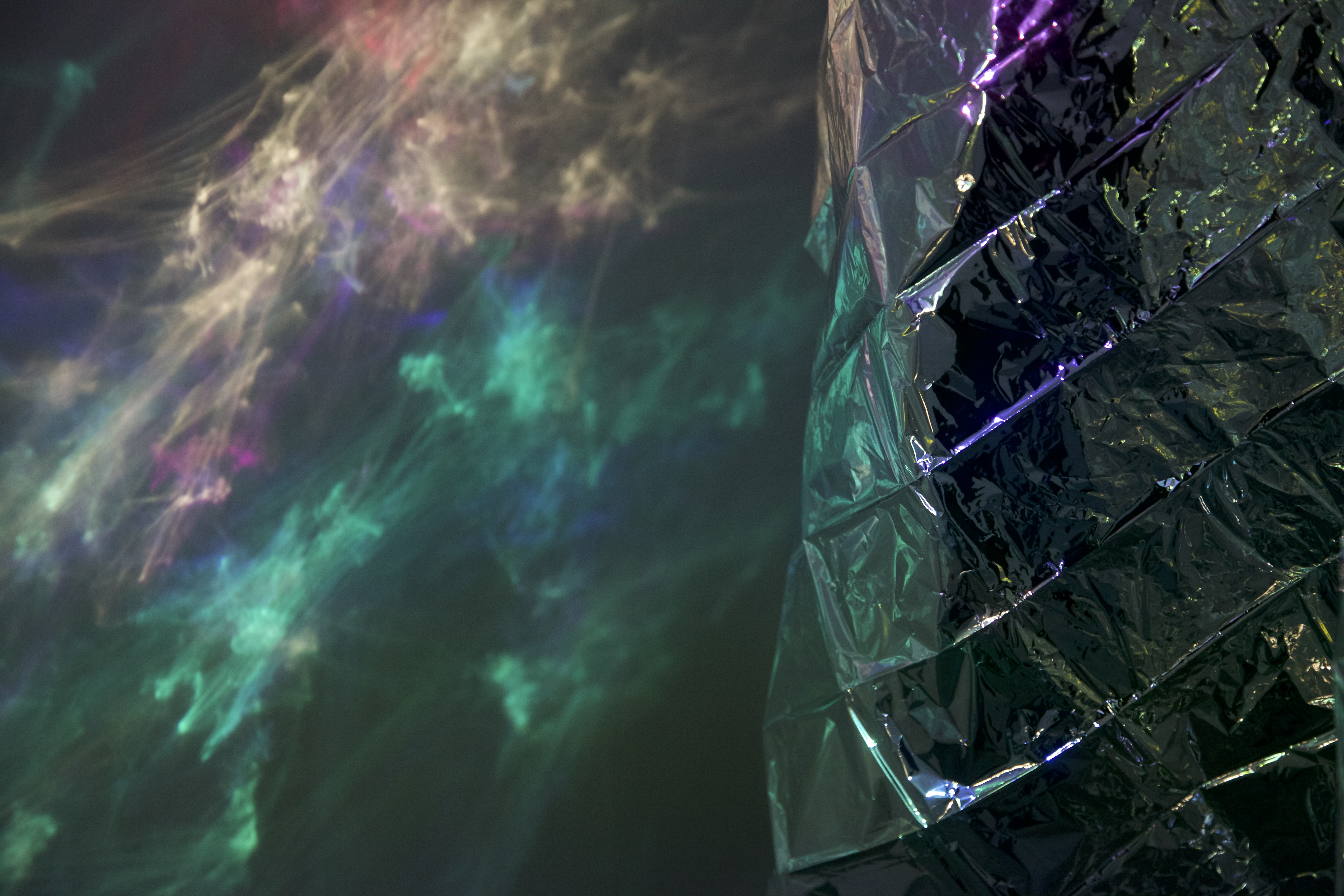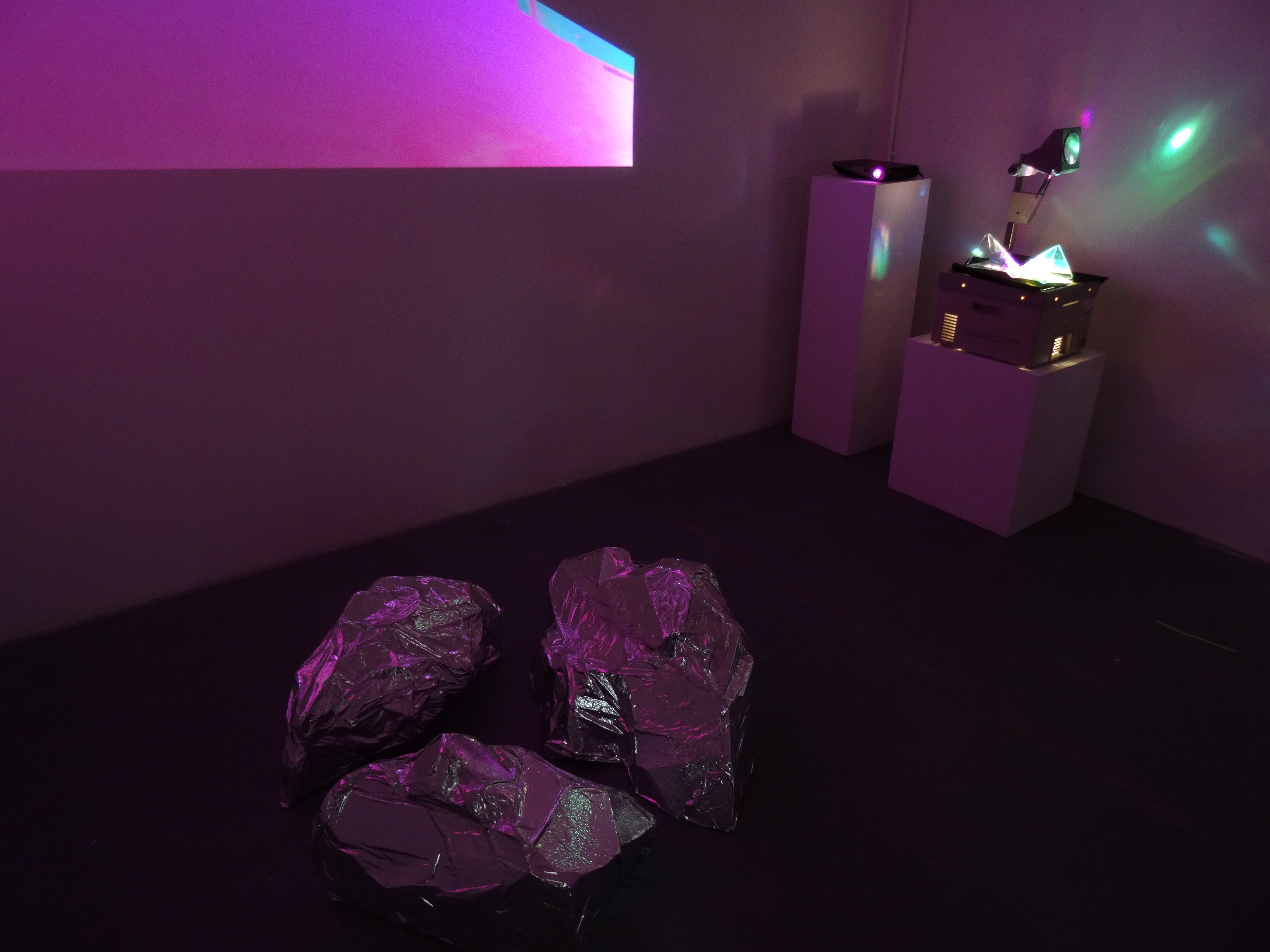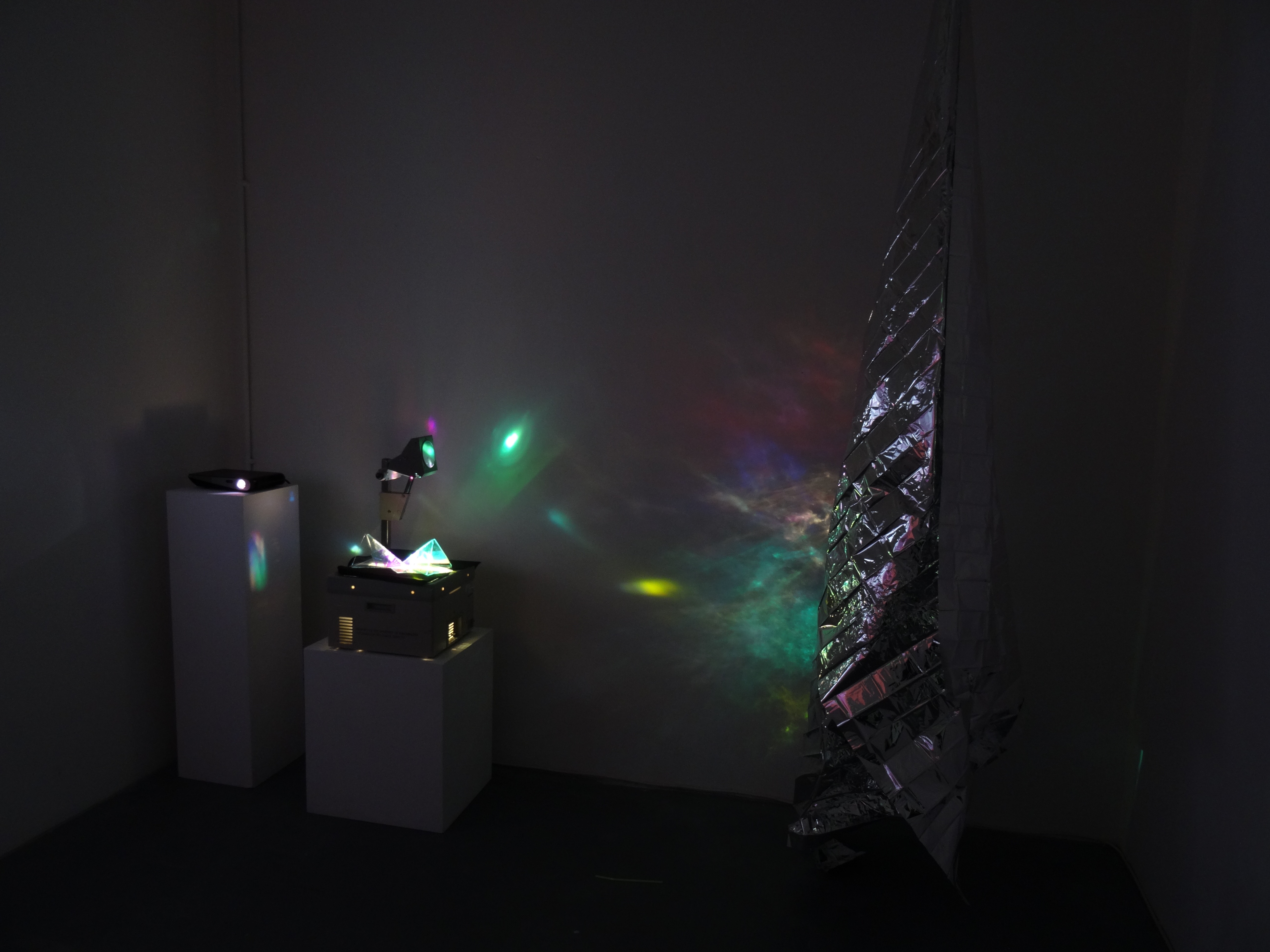 Glass Sculptures, Overhead Projector, Emergency Blanket